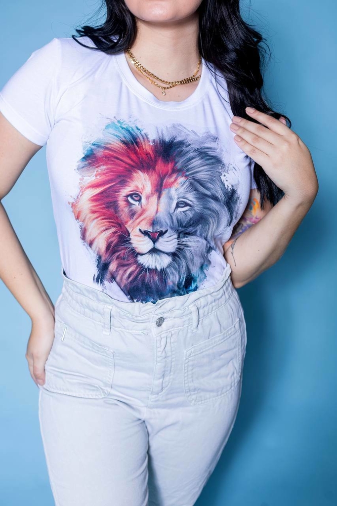 -- T-Shirt Branca Leão --